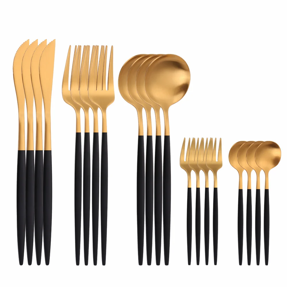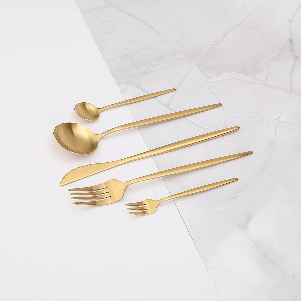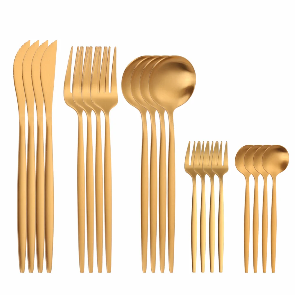 Набор столовых приборов из нержавеющей стали, матовое золото, приго...