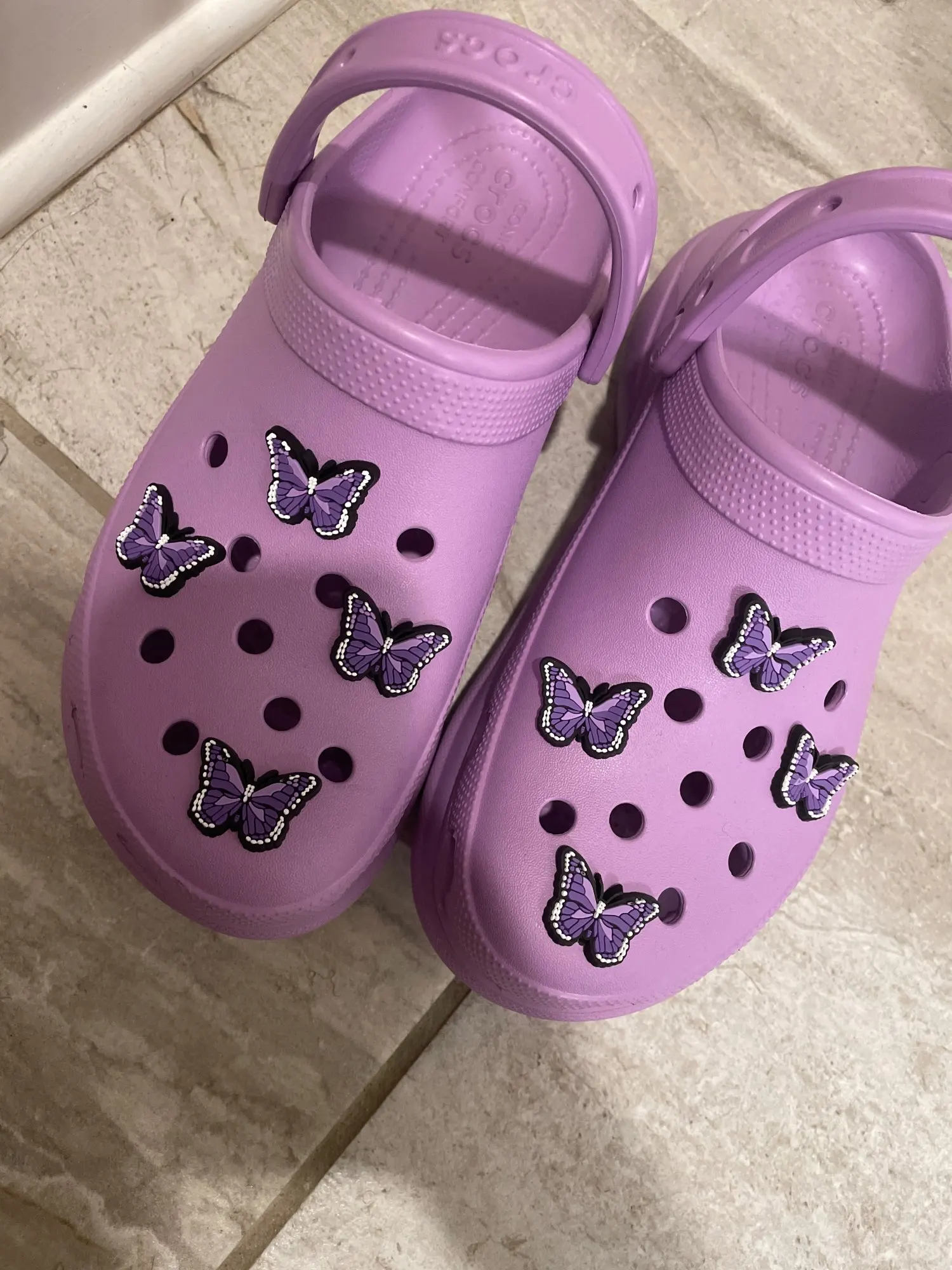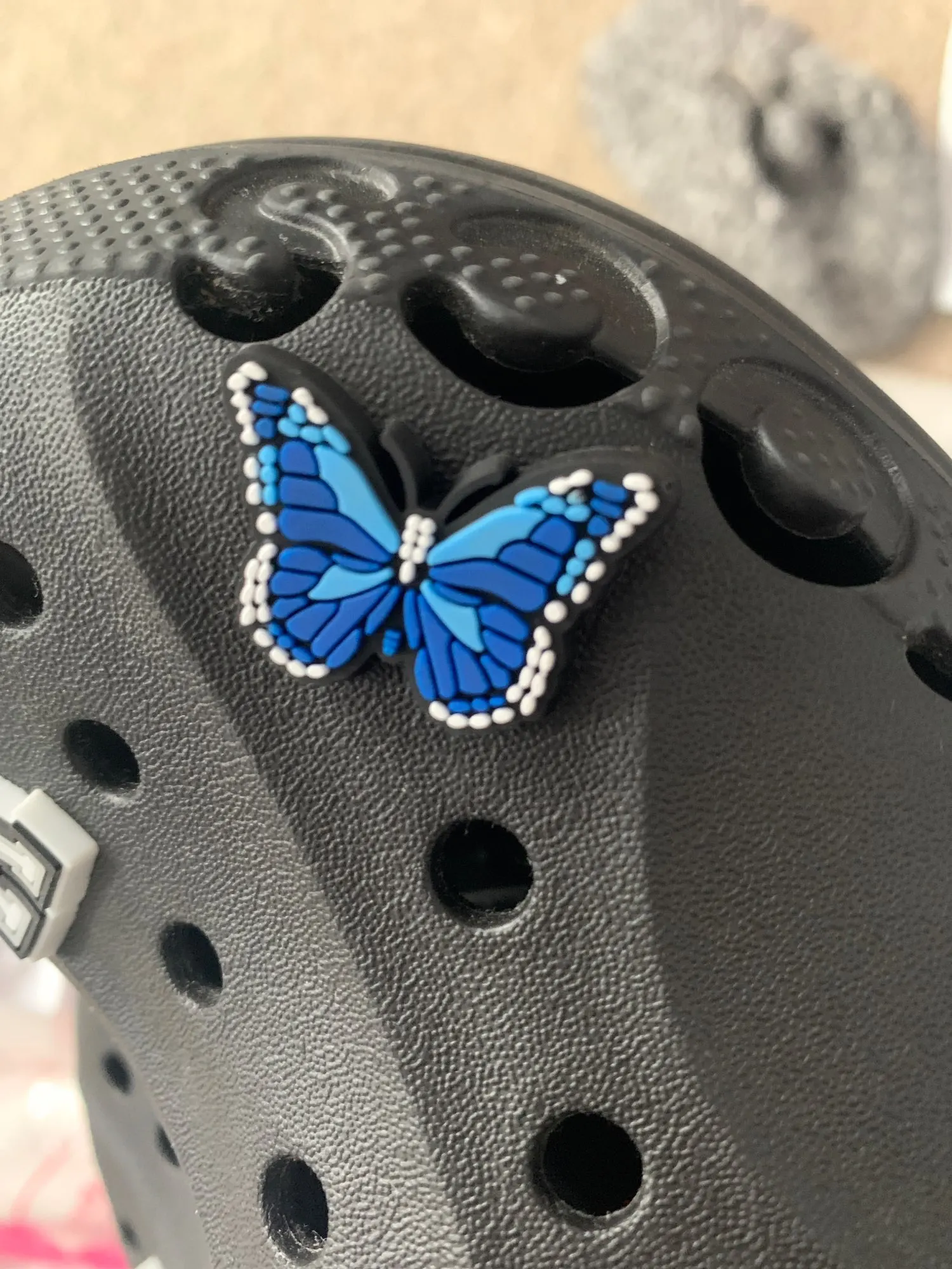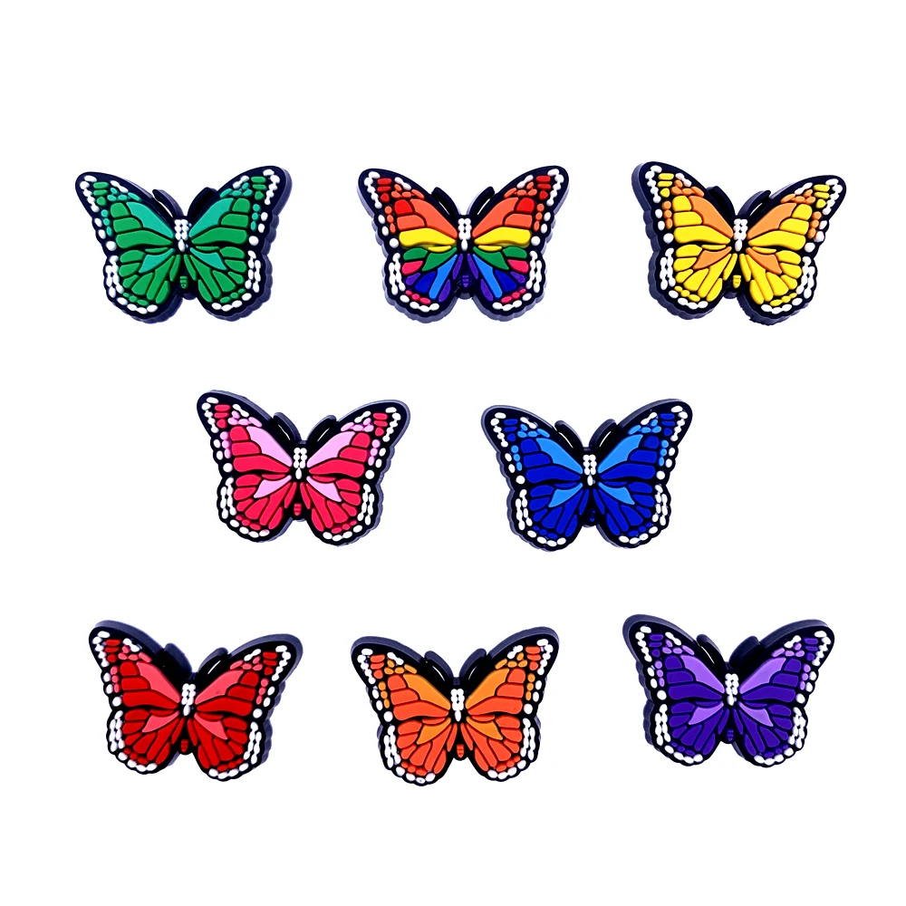 Лидер продаж, 1 шт., силиконовые Подвески в виде иконы бабочки для обуви, аксессуары в виде мультяшных животных, Кроксы, пряжки для женщин и девочек, подарки, украшения для браслета сделай сам
