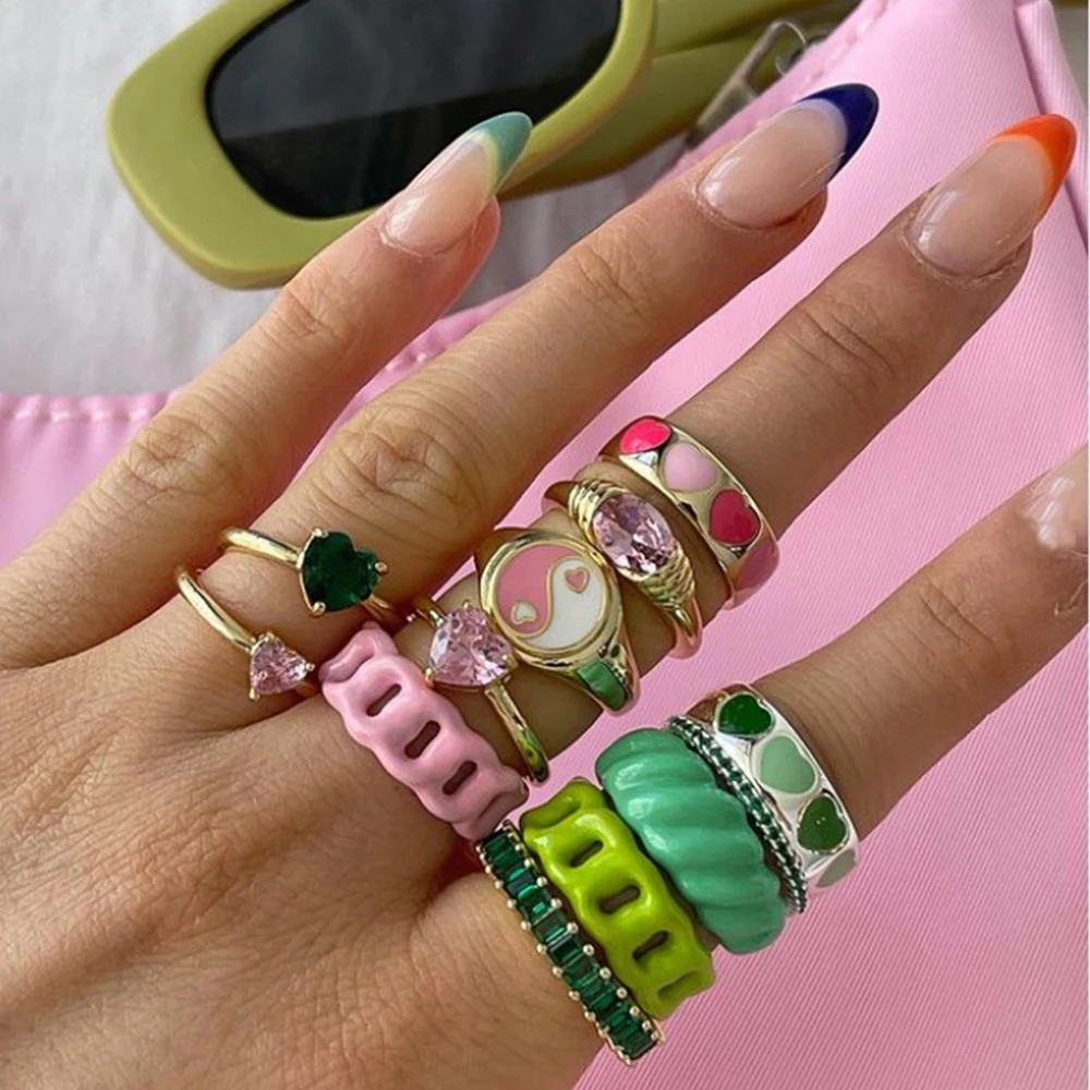 Модные женские кольца в Корейском стиле Y2K с эмалью, индивидуальны...
