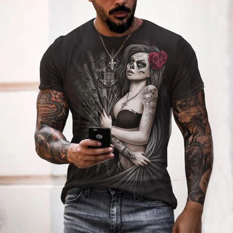 Футболка мужская летняя с коротким рукавом и рисунком черепа