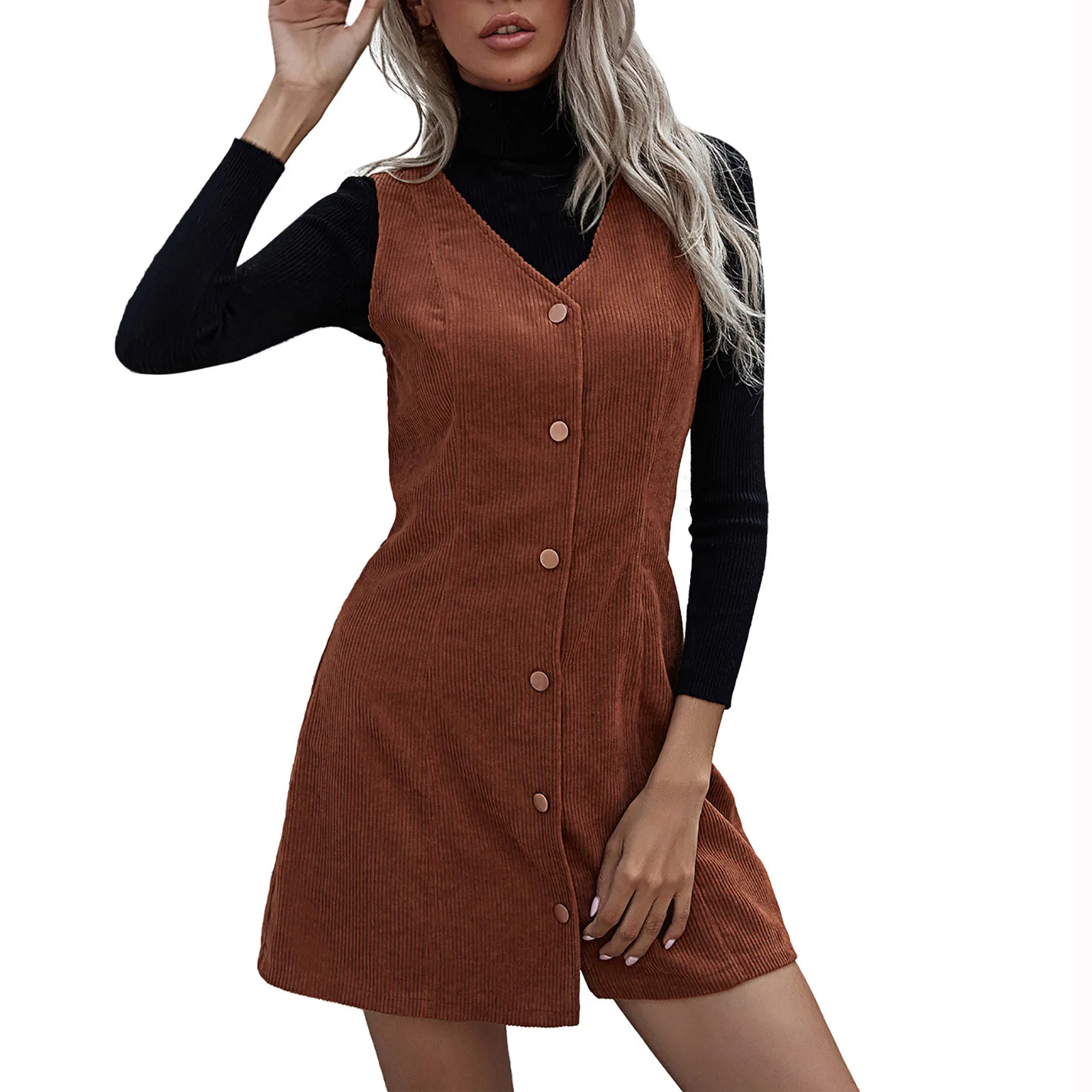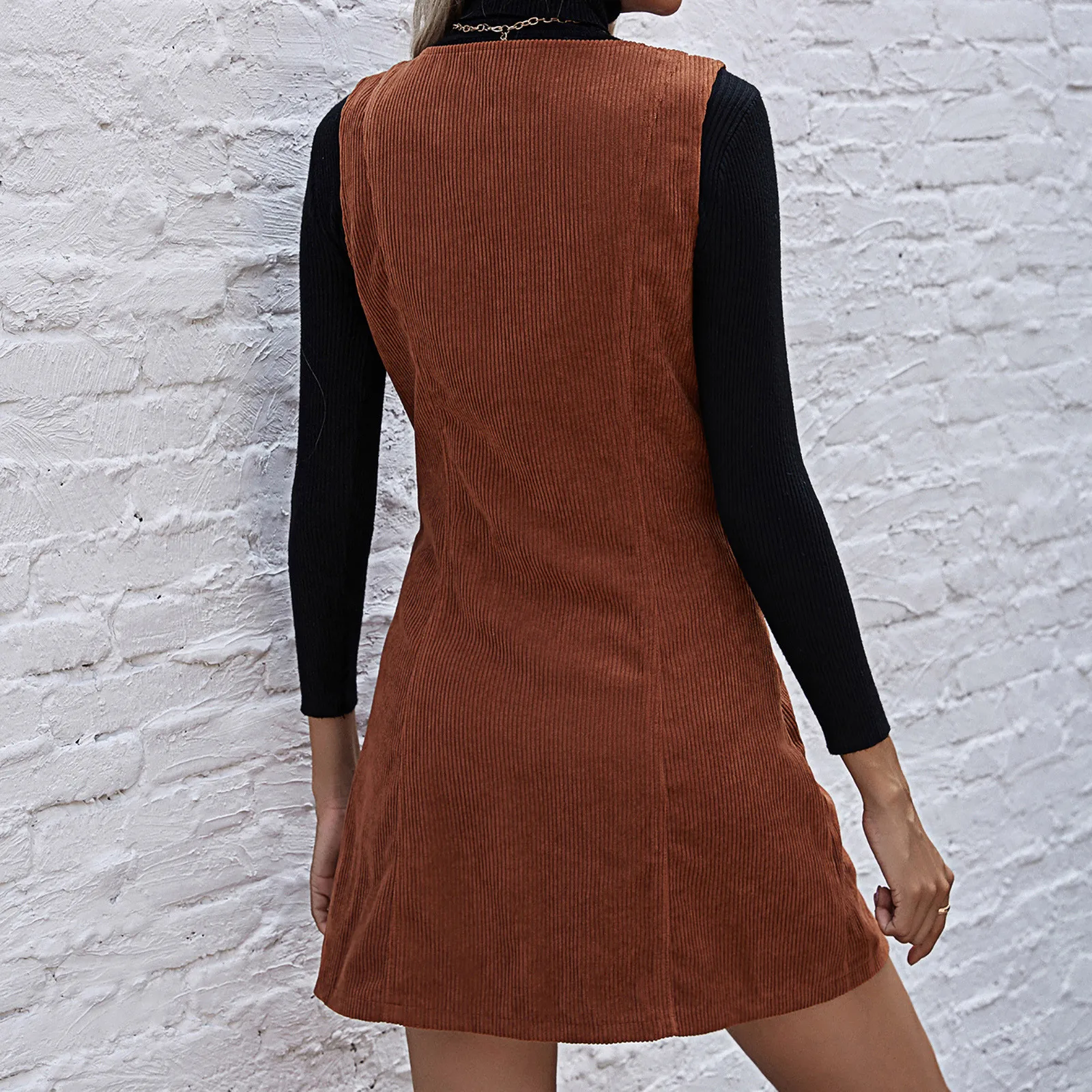 Женское платье осень и зима темперамент v-образным вырезом вельветовое платье без рукавов