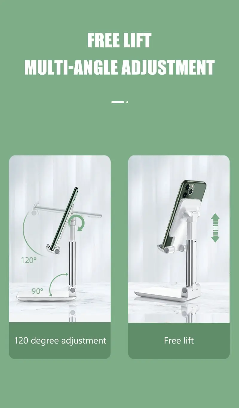 Описание товара:1. Совместимость с мобильными телефонами и планшетами2. Складной дизайн, маленький и портативный, очень удобный3.ABS противоскользящая панель, противоскользящая Силиконовая накладка, четыре угла Противоскользящий силикон.4. Опорный стержень из сплава, PC, ABS корпус, несущая металлическая пластина.5. Высота может быть поднята и опущена свободно, и шаг может быть отрегулирован на 120 градусов свободно.