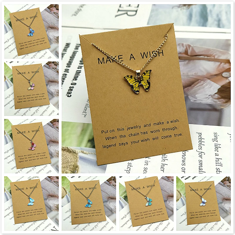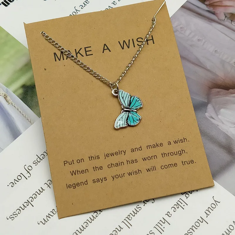Женское ожерелье с подвеской-бабочкой, серебристого цвета