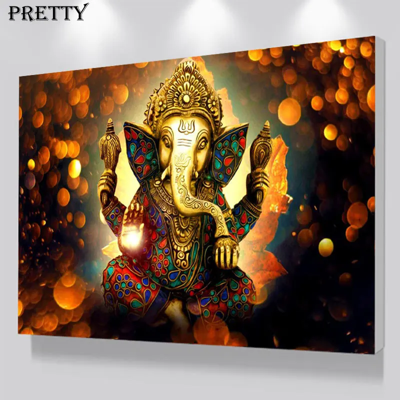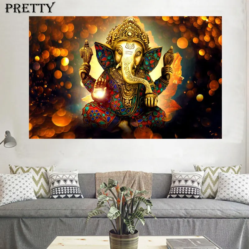 Индийский Шива Ганеша, холст, живопись, настенное искусство, роскошный золотой, красный слон, с принтом короны постер, скандинавский Декор для гостиной, картины