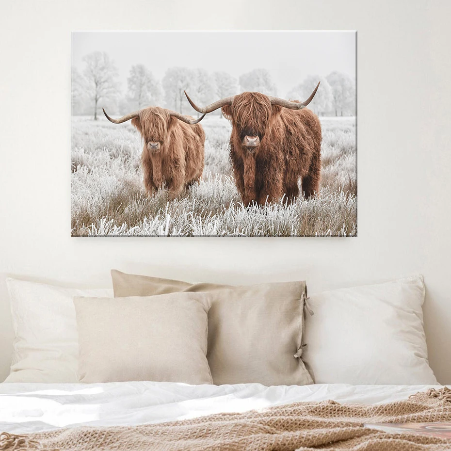 Горы корова стадо настенное Искусство животных холст картины зимний фермерский дом цифровые плакаты натуральный принты с пейзажем Декор для спальни
