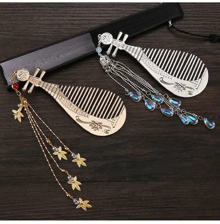 Древняя расческа Pipa с подвеской с кисточкой, женские заколки для волос в китайском стиле, заколка для волос Hanfu, головной убор, подарки