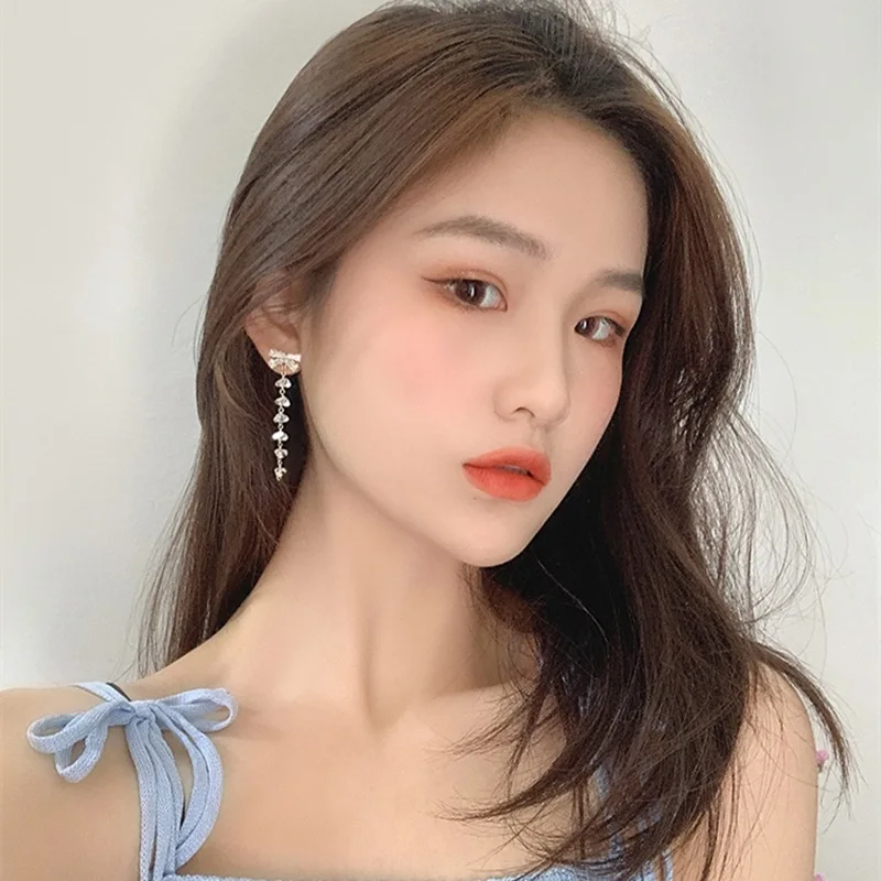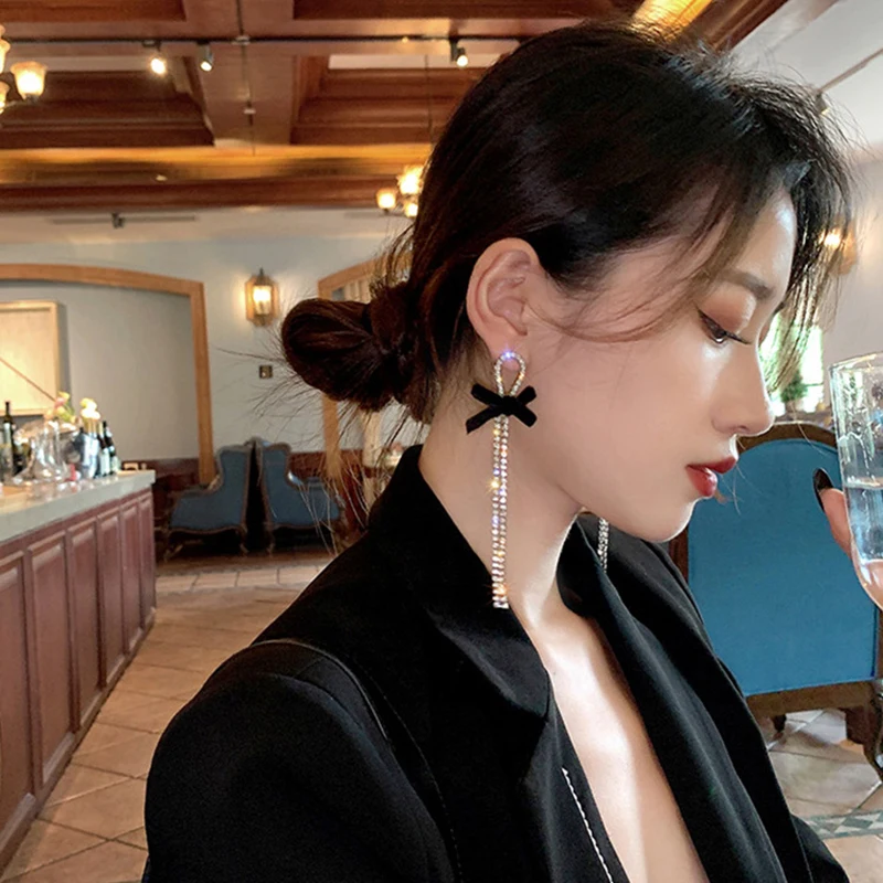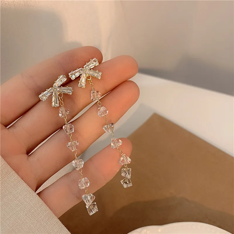 Новое поступление, блестящие длинные висячие серьги Стразы на цепоч...