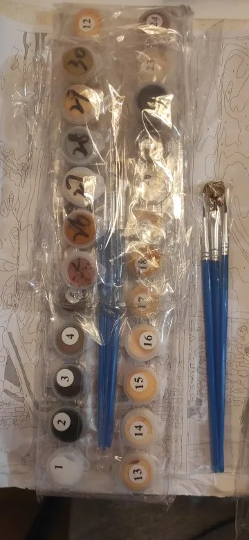 мне не понравилось отношение к клиенту. заказала 16 января, очень долго не отправляли (20 дней). на сообщения не отвечали. отправили в последний день когда можно было открывать спор. упаковка мне тоже не понравилась, полотна сложили пополам и замотали краски. некоторые цвета красок подписаны от руки фломастером, некоторые стёрлись.