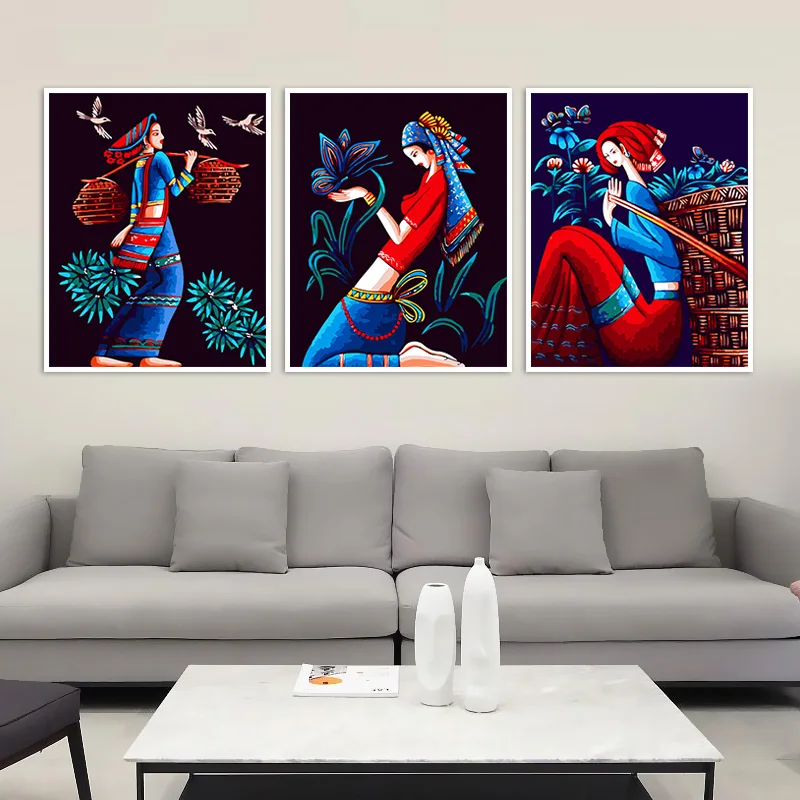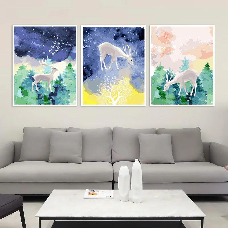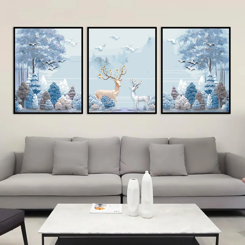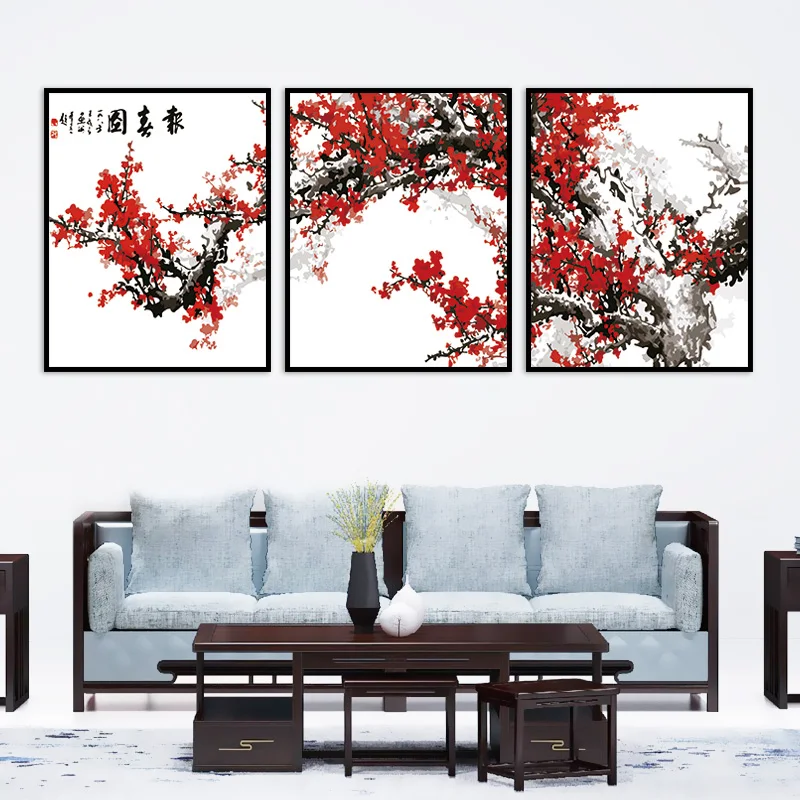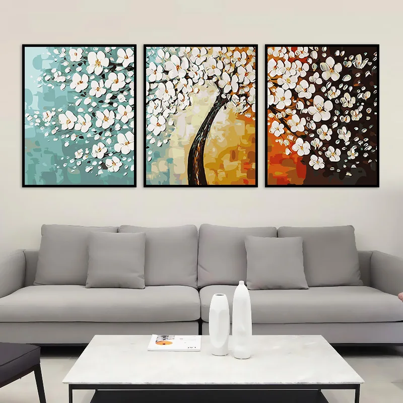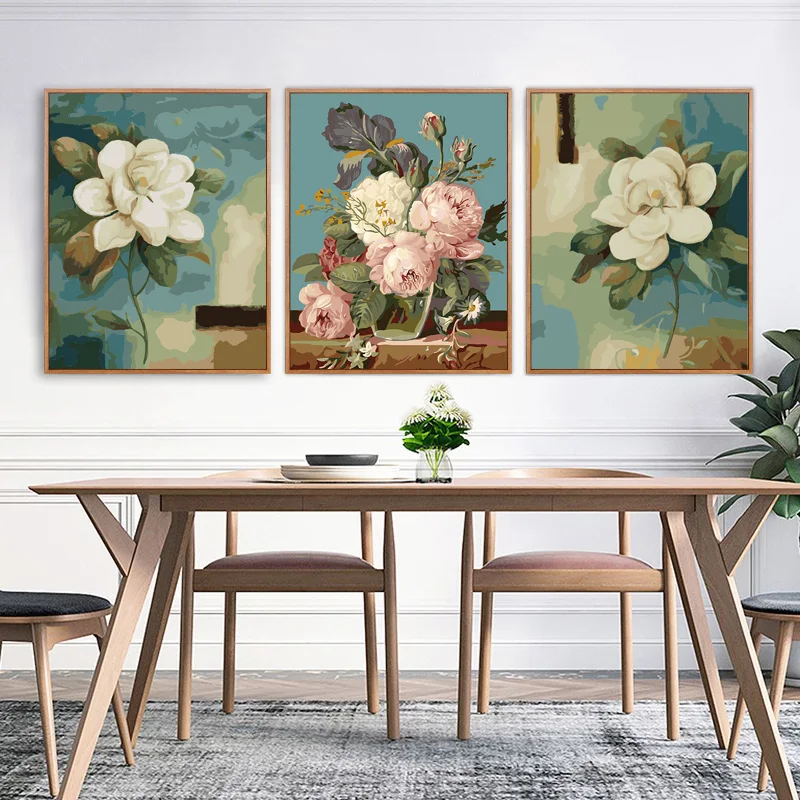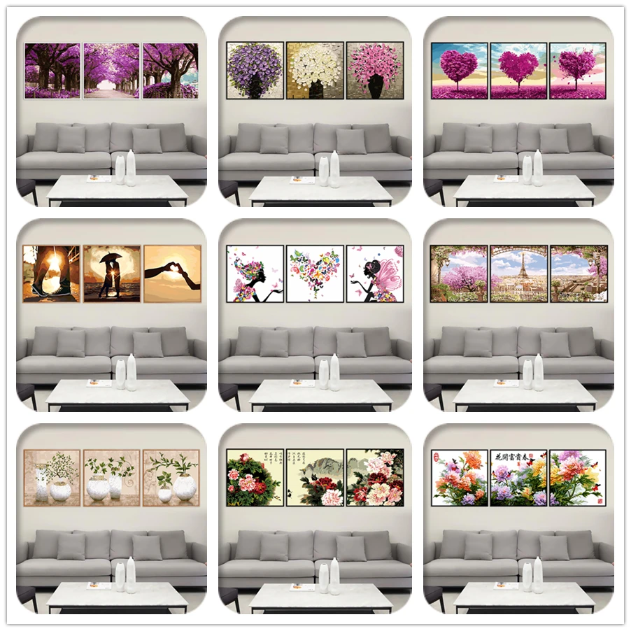 50x50 см x 3 шт., Триптих для творчества, рисование на холсте, краска по номерам, цветы, искусство на холсте, декор для стен