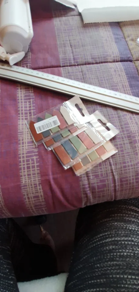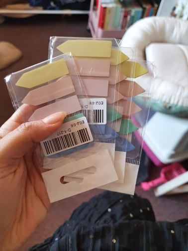 В соответствии с изображением продукта, кажется, Одна длинная полоса липких заметок, но то, что я получил, было крошечным 4 или 5 цветов. Все цвета точно такие же, как и в описании товара.