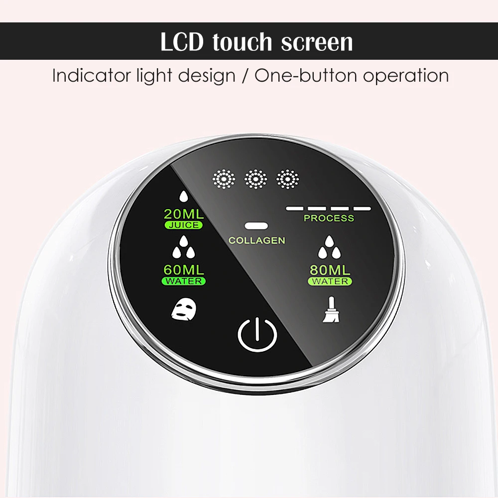 1. Наша машина для изготовления натуральных фруктовых и овощных масок для лица использует фрукты и овощи, чтобы сделать различные натуральные маски для лица в соответствии с вашей кожей, что позволяет вашей коже наслаждаться естественными масками для лица и массажем кожи.2. Маска изготовлена из очищенной воды, молока, сока и коллагена, что является безопасным, здоровым и экологически чистым, подходит для всех групп людей, даже беременных женщин.3. Маски для лица, изготовленные из различных фруктов и овощей, имеют различные эффекты, такие как отбеливание кожи, увлажнение, восстановление упругости и жизненной силы кожи и т. д., удовлетворяя ваши реальные потребности.4. Сенсорный ЖК-экран, Световой индикатор и управление одной кнопкой делают работу очень легкой, и световой индикатор проинструктирует вас, чтобы завершить все шаги на сенсорном экране.5. Технология нагрева PTC (постоянная температура 80 °C) может эффективно поддерживать активность питательных веществ в фруктах и овощах, чтобы ваша кожа лучше впитывала питательные вещества.6. Высокоточное распознавание и маска, которая соответствует форме человеческого лица, могут помочь вам сделать идеальную маску с лучшим соотношением.7. Эта машина для фруктовых и овощных масок для лица имеет компактный и легкий корпус и легко переносится, что позволяет использовать Натуральные маски для лица для ухода за кожей во время путешествий или деловых поездок.* Общее количество добавленной жидкости в машину не должно превышать 90 мл.* Эта машина не является водонепроницаемой, пожалуйста, не стирайте ее водой.