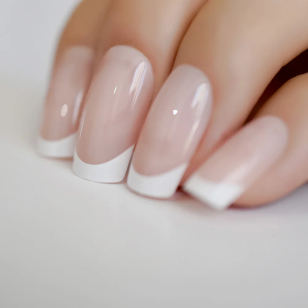 Французские квадратные ногти, круглые натуральные дизайнерские ногти, Классические нюдовые полноповерхностные ногти, Ежедневное ношение, Flase Nails с белыми краями