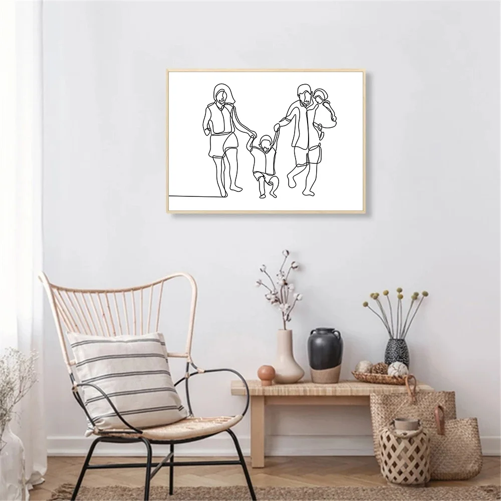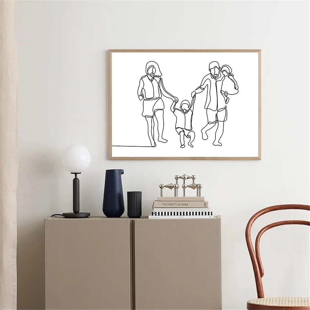 Абстрактный линейный Рисунок, холст, принты, Папа, мама, сын, дочь,...