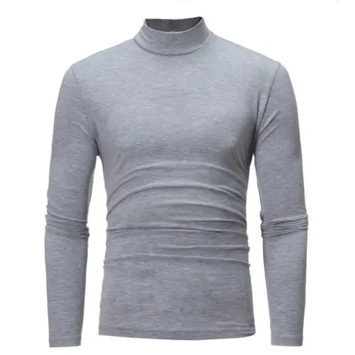 Мужской Повседневный пуловер с полувысоким воротником, базовая хлопковая Футболка стрейч с высоким воротником и длинными рукавами, Мужская футболка высокого качества