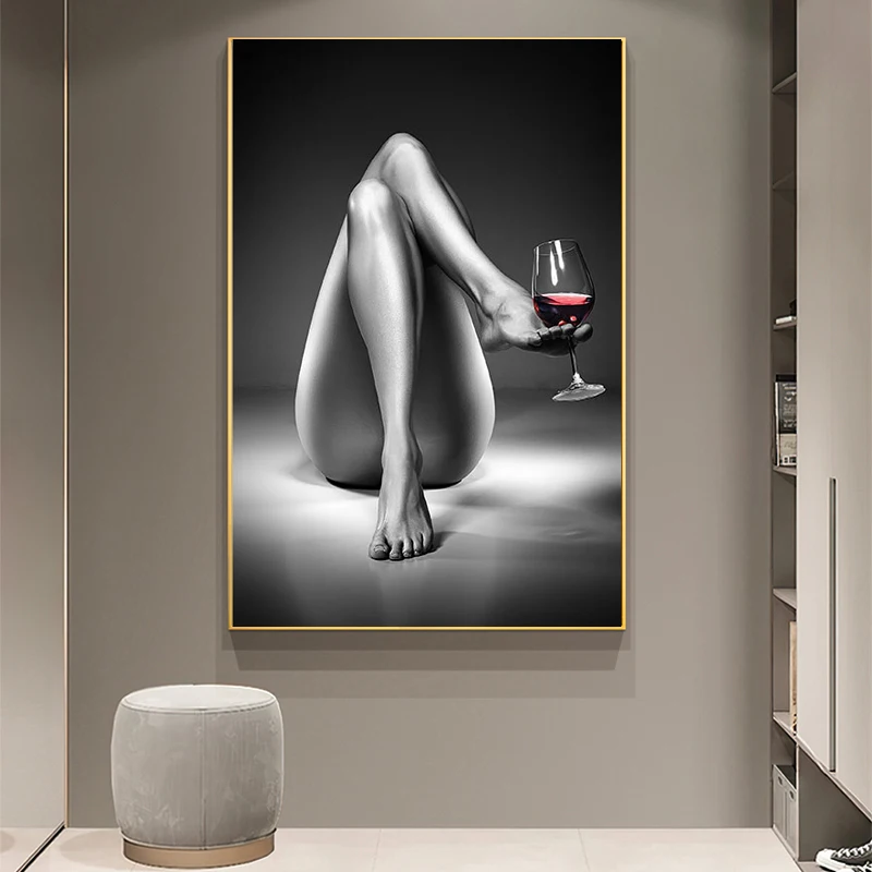 Картина на холсте с обнаженными ножками и красным винным бокалом черная белая сексуальная Настенная картина Современные картины для гостиной домашний декор квадраты