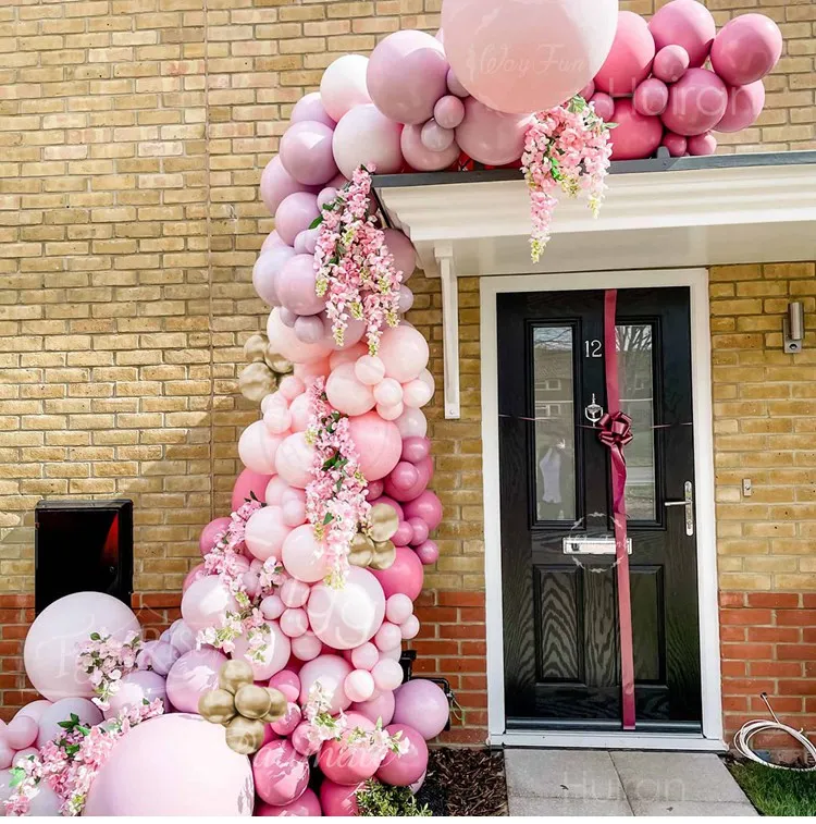 Розовые воздушные шары, Свадебный дневной свет, украшенный бантом, гирлянда с воздушными шарами, украшение для детского праздника, дня рождения, девичника, вечеринки невесты