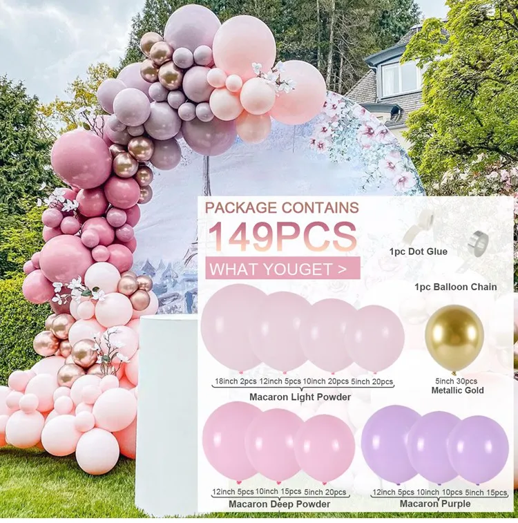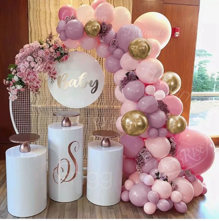 Розовый макарон, металлические воздушные шары, гирлянда, раньше, дл...