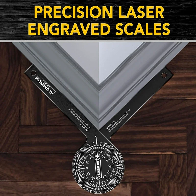 > Универсальный измерительный инструментНаше устройство для измерения угла деления пилы для деревообработки подходит для рисования, архитектурного дизайна, столярных работ, измерения угла и длины и т. д. идеально подходит для укладки, обрезки, сантехники и различных других видов деревообработки.