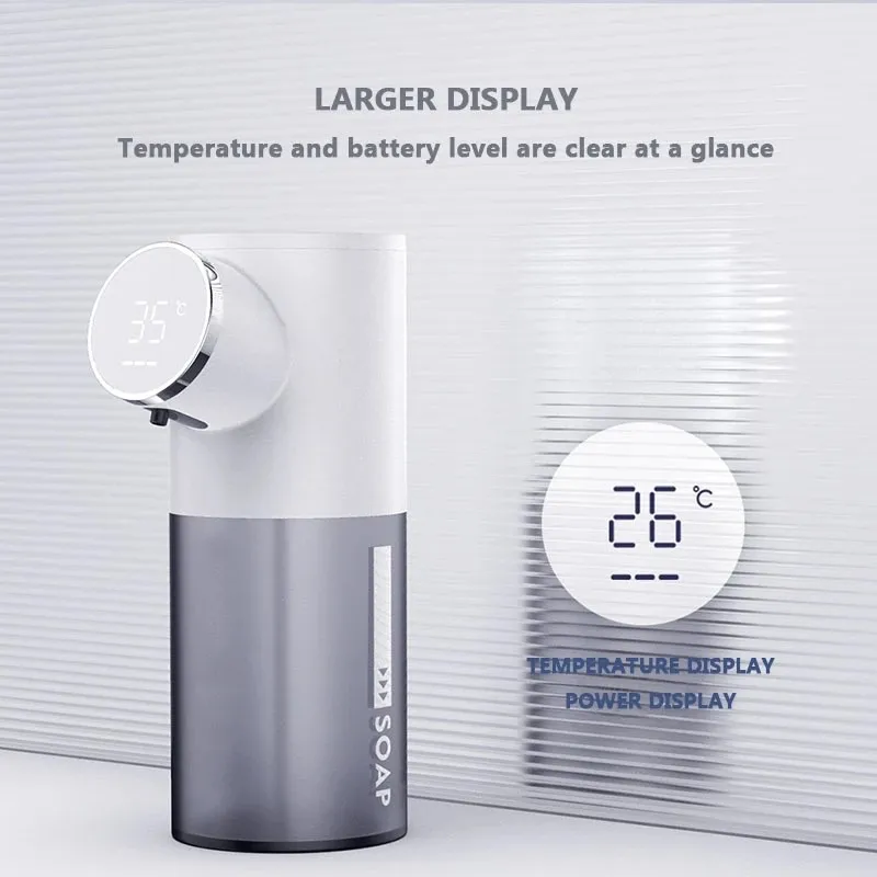 -320 мл большой емкости открытый резервуар для воды, удобный и быстрый для пополнения жидкости-0,25 во-вторых автоматизированный инфракрасный индукционный для того чтобы произвести пена быстро-Совместимость с различными поролоновыми дезинфицирующими средствами для рук-Встроенный высокочувствительный датчик температуры, цифровой дисплей изменения температуры окружающей среды-Точно Контролируйте соотношение смешивания мыла и воздуха, делая пену более плотной-Эффективный микро мотор, низкое энергопотребление, более длительный срок службы батареи