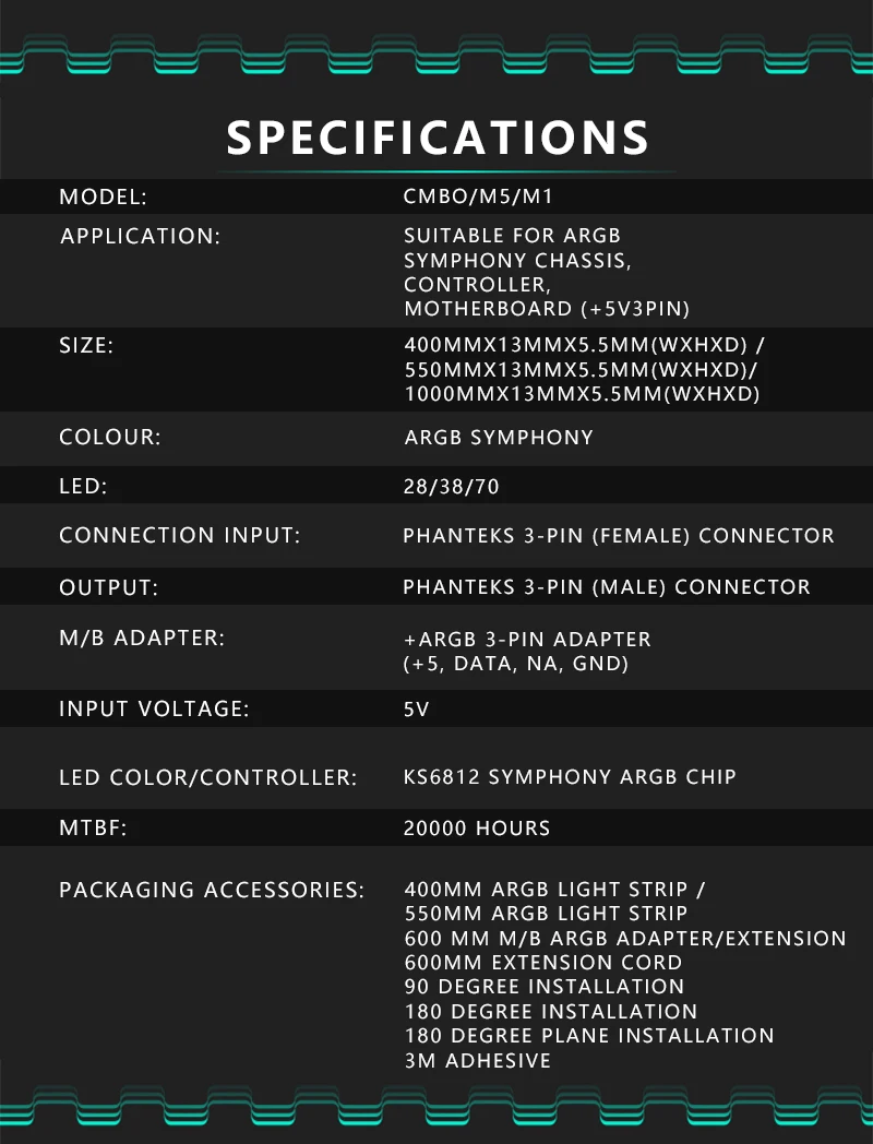 Неоновая цифровая RGB Светодиодная лента Phanteks M5 550 мм 2x мм 5...