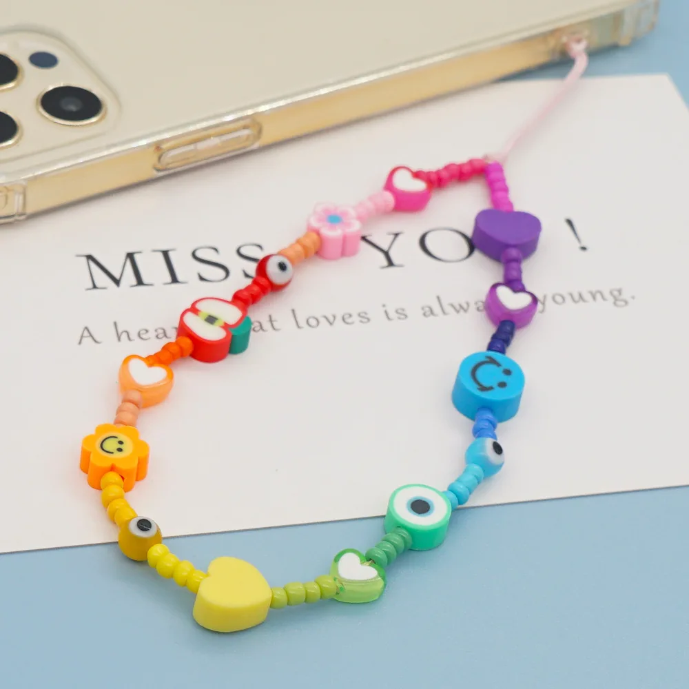 Длинная цепочка для телефона, цветные бусины, мягкая керамика, акри...