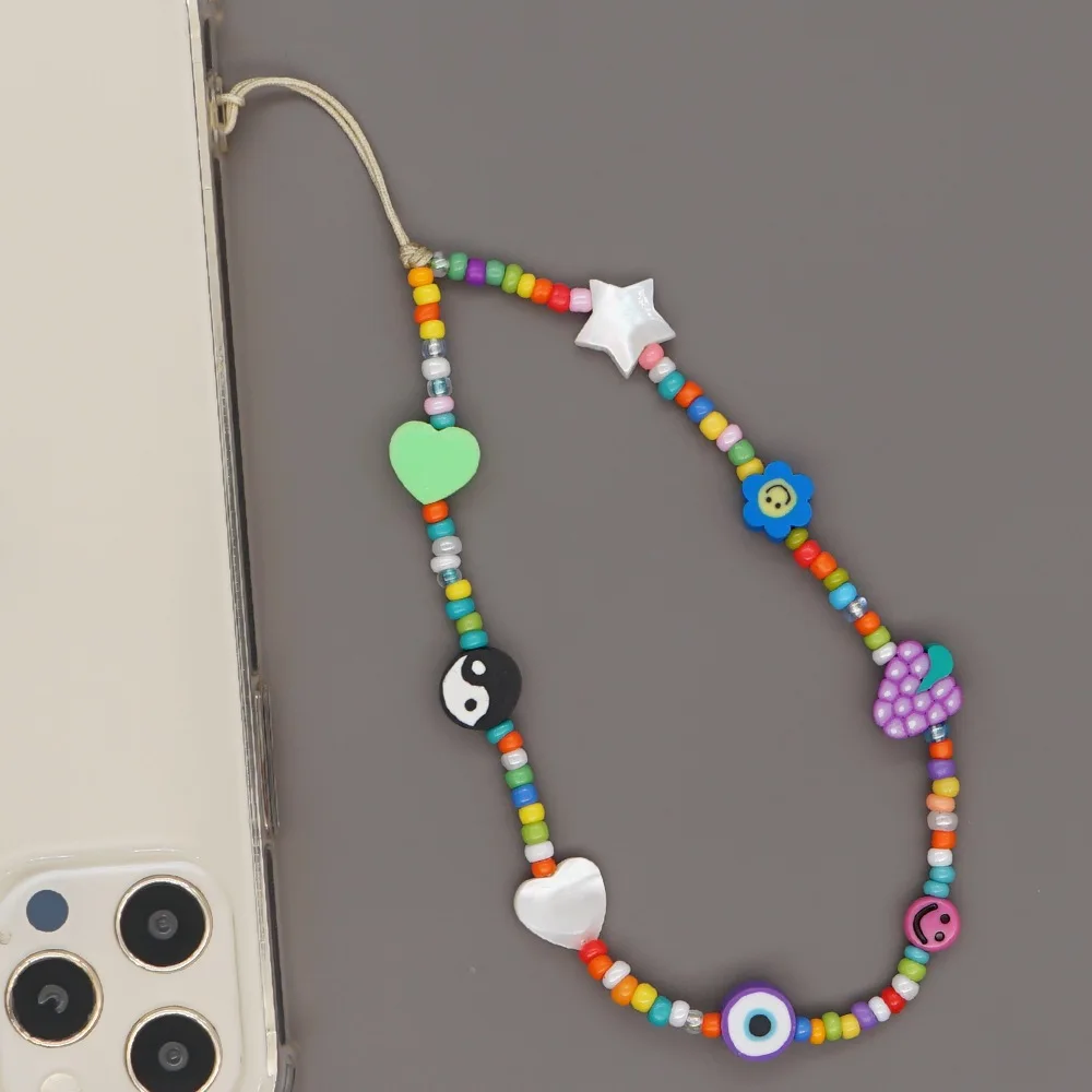 Цепочка-чокер для телефона, с бусинами, от сглаза, мягкий керамичес...
