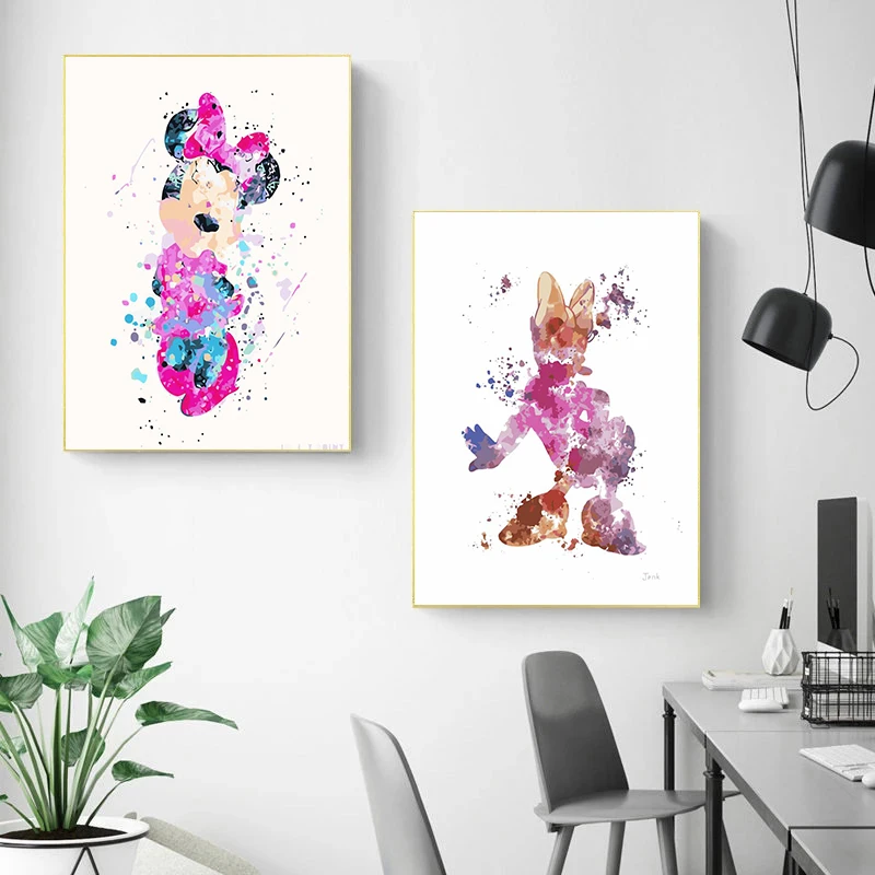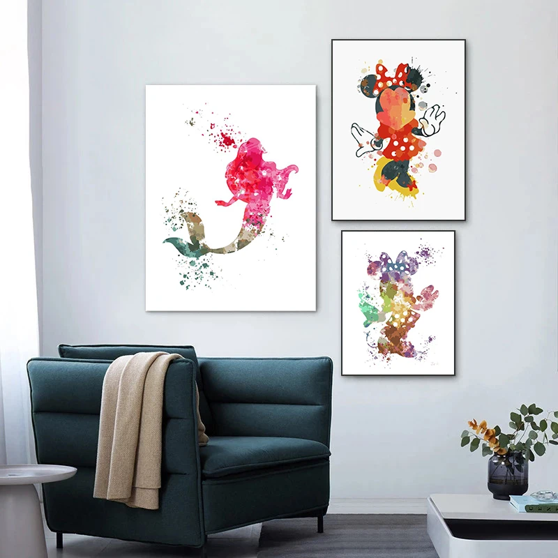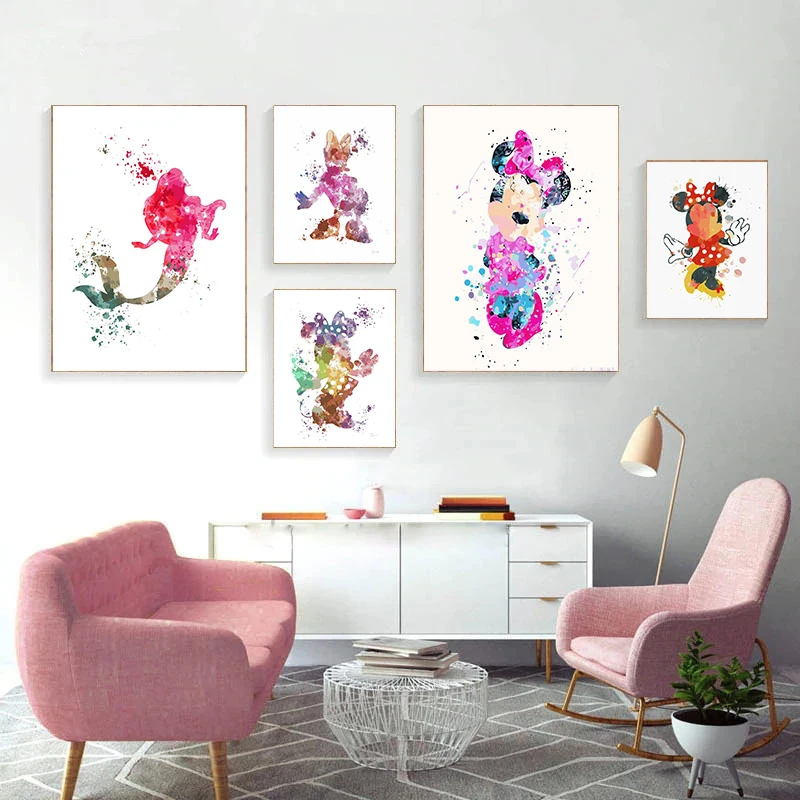 Картины на холсте с героями Диснея, акварельными мультфильмами, постеры с Микки и Минни, аниме принты, настенные картины для гостиной, домашний декор