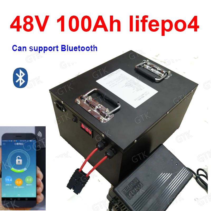 Литиевая батарея GTK lifepo4 48 в 100 ач с bluetooth BMS APP для инвертора для трехколесного велосипеда, скутера с зарядным устройством 10 А для хранения солнечной энергии