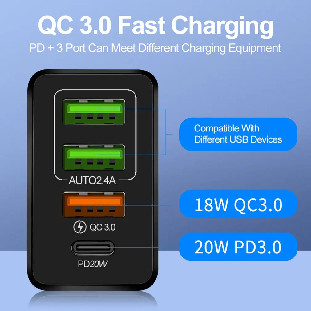 1. Умный чип: Интеллектуальный чип обновления, быстрая и безопасная подвешивание, pd + 3 порта отвечают вашим различным потребностям зарядки.