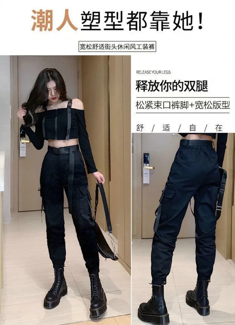 Брюки-карго женские с завышенной талией, модные джоггеры с цепочками, однотонные свободные штаны в стиле хип-хоп, уличная одежда, весна-лето 2021