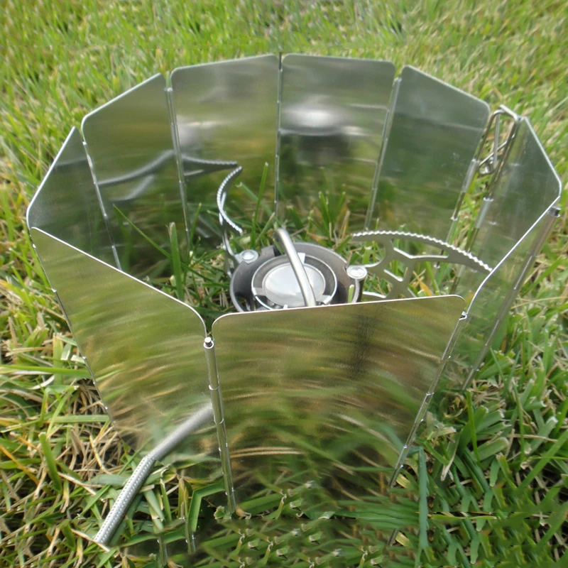 Складная горелка для кемпинга, газовая плита на ветровом стекле, 12 тарелок, ветровой экран, для приготовления пищи на открытом воздухе