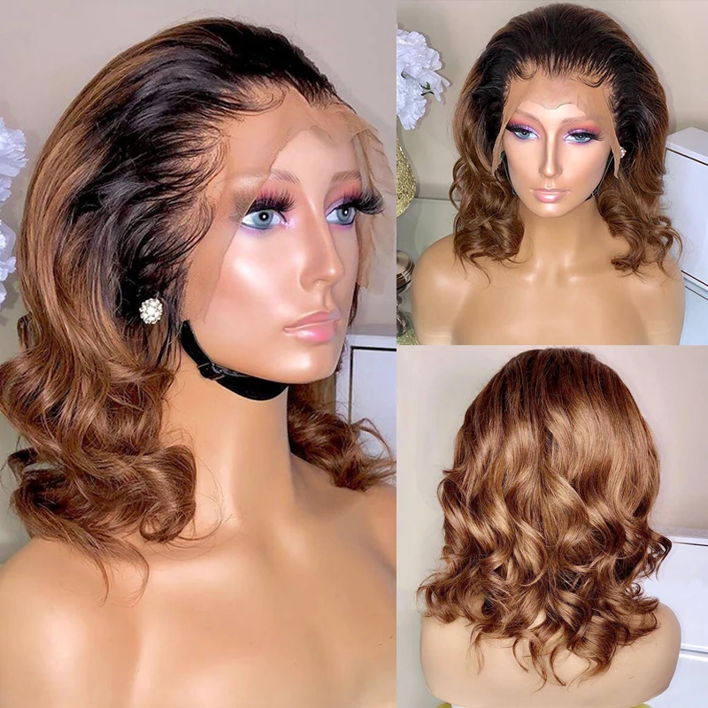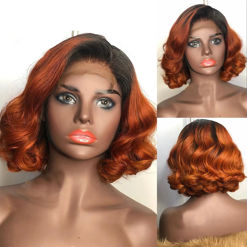 Парики Омбре из человеческих волос на сетке спереди, волнистые, короткие, Боб, бразильские, Реми, на сетке спереди, парики для женщин T1B30, оранжевый, синий, зеленый, фиолетовый