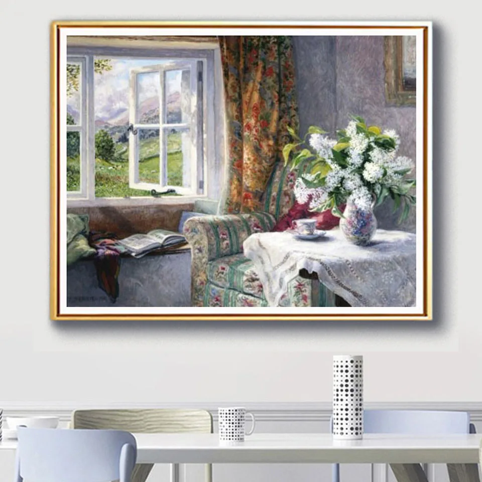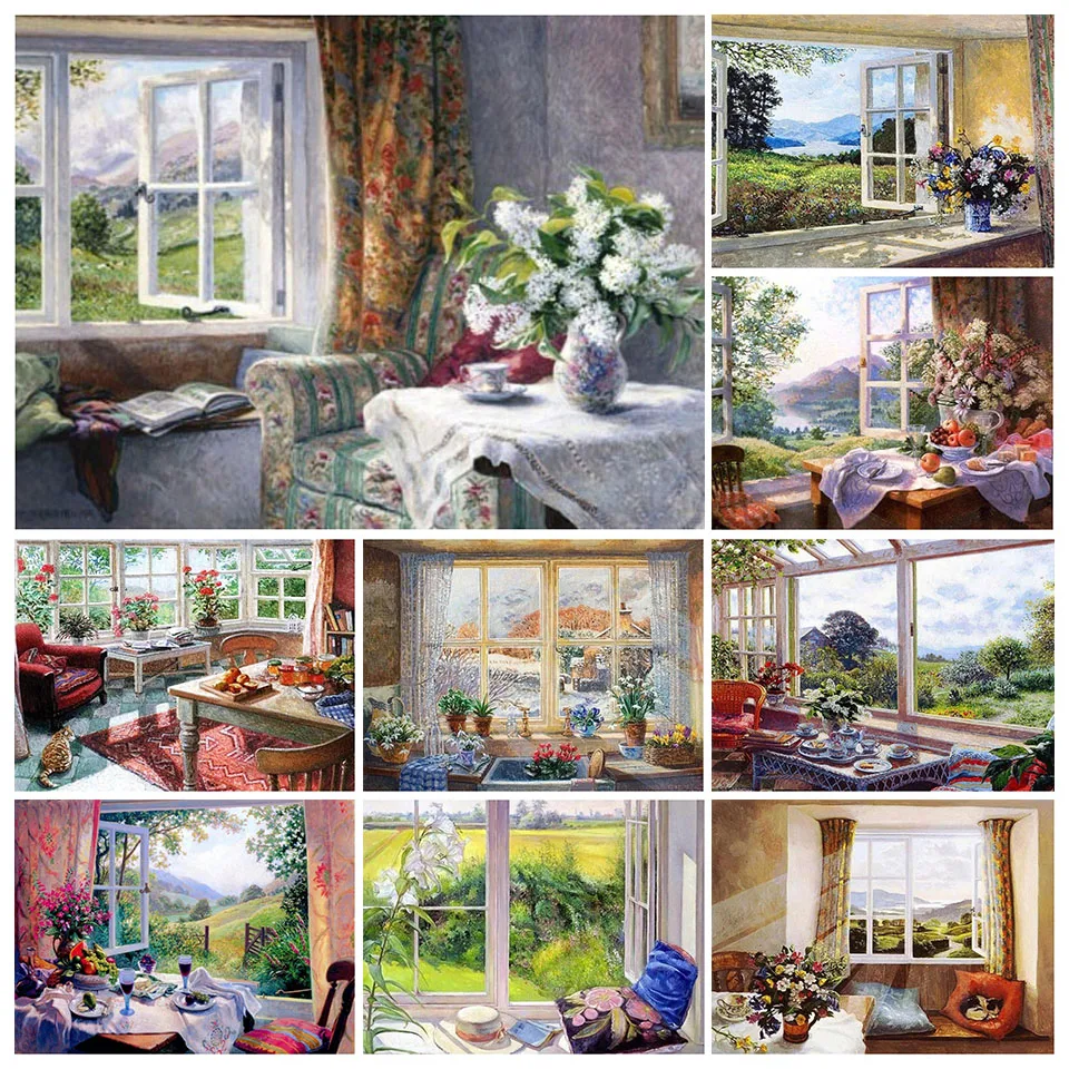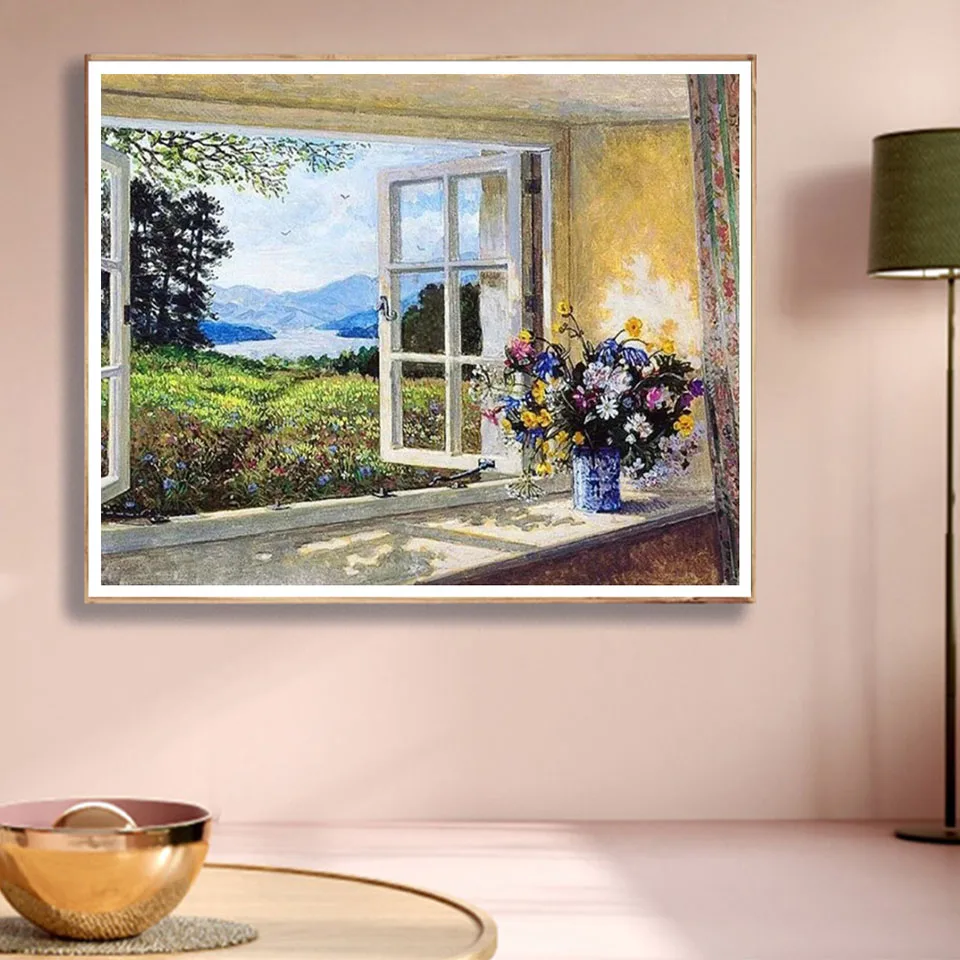 5D алмазная живопись сделай сам, пейзаж, окно, цветок, Набор для вы...