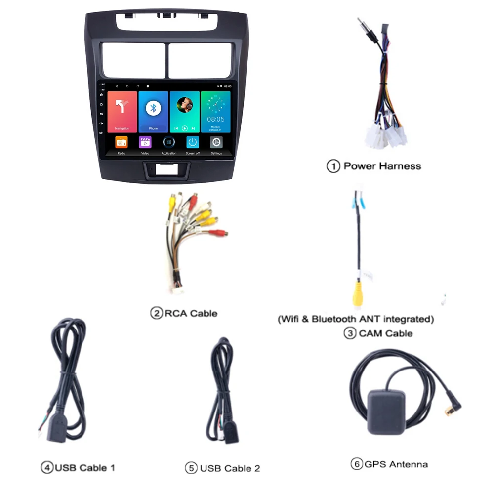 1 х Автомобильный MP5 плеер1 х Кабель питания1 x Антенна GPS1 x вход камеры1 х RCA вход и выход2 x USB кабельРуководство по эксплуатации-1 шт.