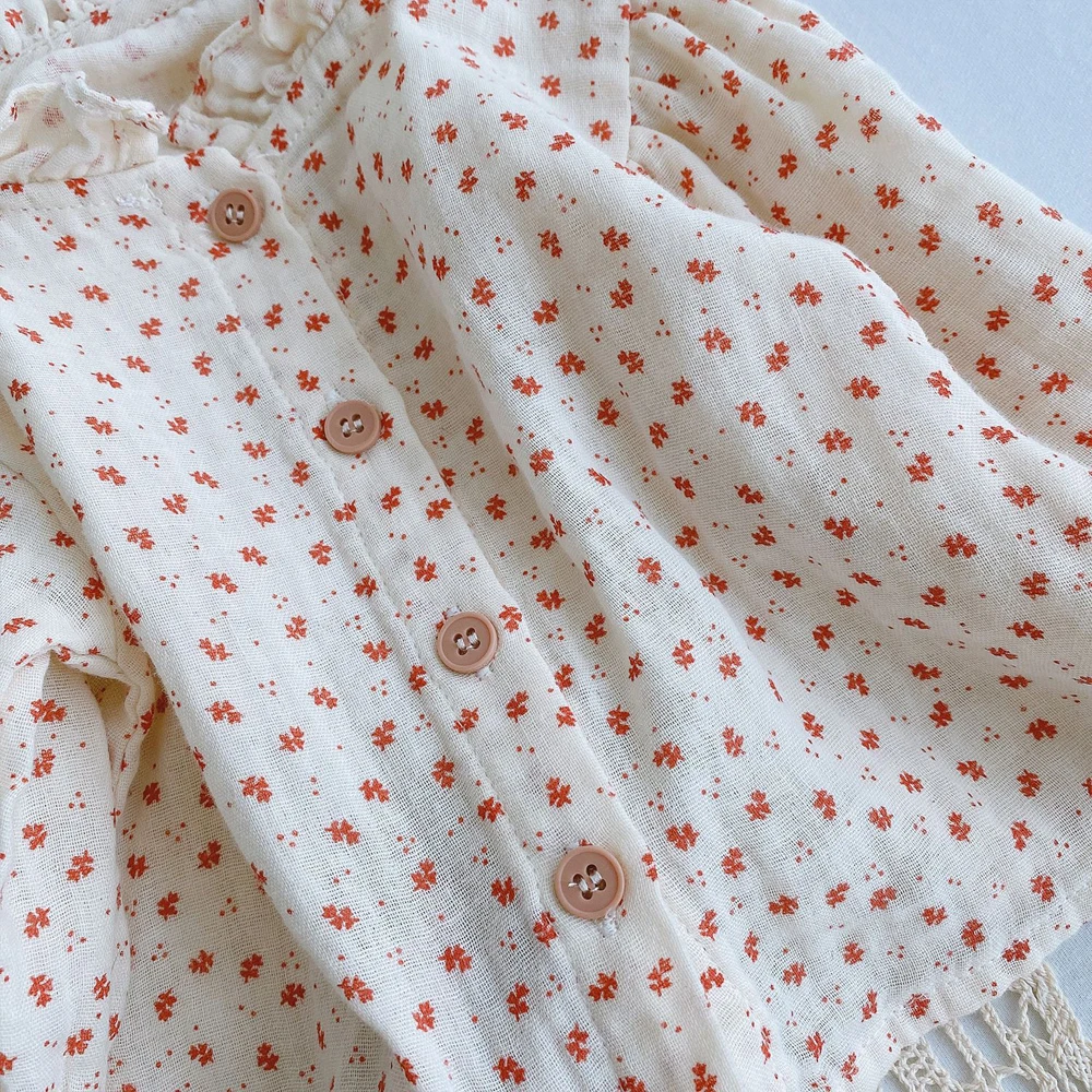 Детский хлопковый комбинезон, рубашка с оборками и цветочным принто...