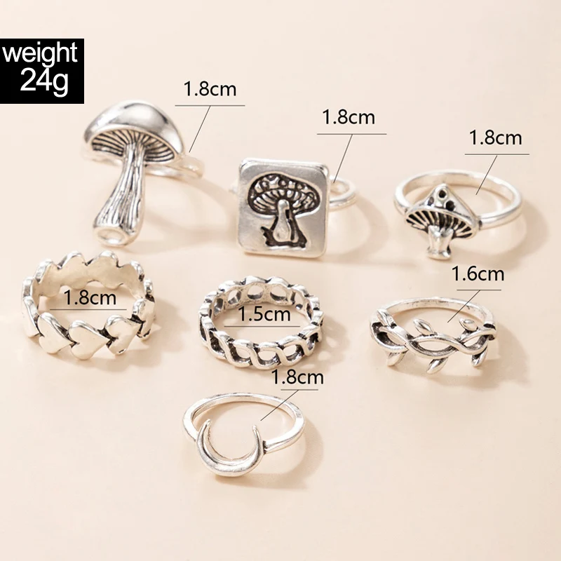 Комплект женских колец Tocona, 7 шт.компл., Винтажные Ювелирные изделия серебристого цвета с подвесками в виде полумесяца и гриба, 19644