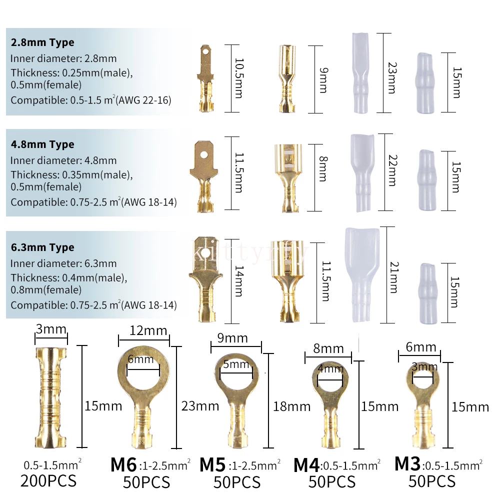 Обжимные клеммы 10002,84,8 мм, 6,3 шт., изолированные штекерные и гнездовые соединители для проводов, набор изоляционные муфты