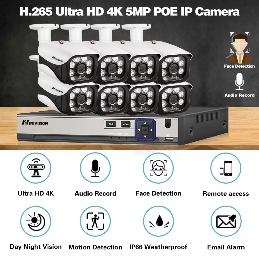 8CH 4CH 8MP Ultra HD POE сетевая система видеонаблюдения 8MP H.265 + NVR с 4K 5MP IP66 Всепогодная ip-камера CCTV комплект безопасности