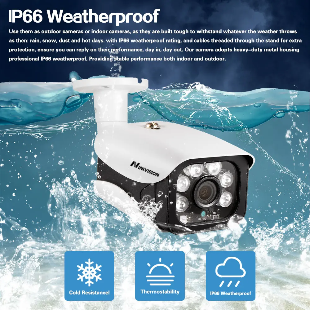 Используйте их в качестве наружных камер или внутренних камер, так как они построены жестко, чтобы выдерживать любую погоду: дождь, снег, пыль и жаркие дни. С защитой от атмосферных воздействий IP66 и кабелями, проходящими через подставку для дополнительной защиты, гарантируем, что вы сможете ответить на их производительность, день в день. Наша камера принимает сверхмощный металлический корпус Профессиональный IP66 Всепогодный, обеспечивая стабильную производительность как внутри, так и снаружи.