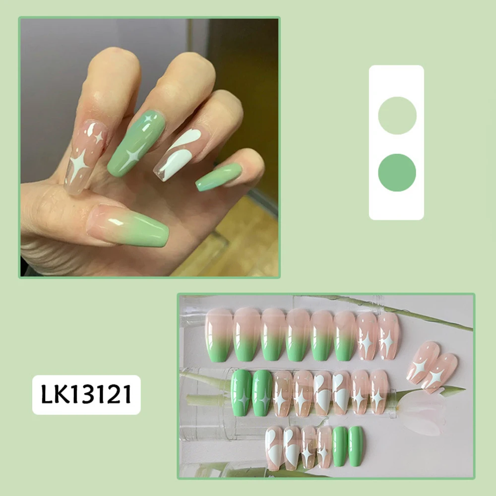 24 шт. светло-зеленые звезды накладные ногти длинные блестящие Кристальные накладные ногти полное покрытие носимые французские Типсы для маникюра