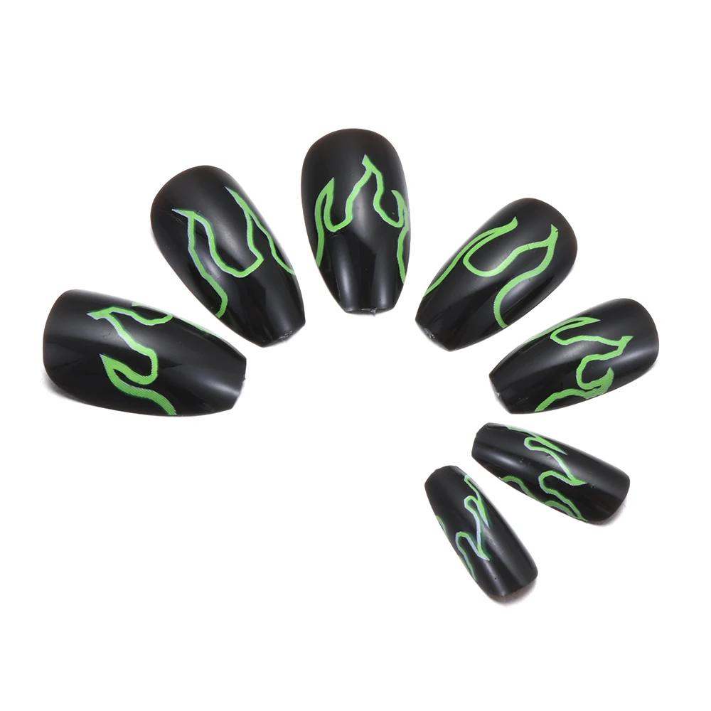 24 шт.коркор. трендовые накладные ногти с черным пламенем, искусств...