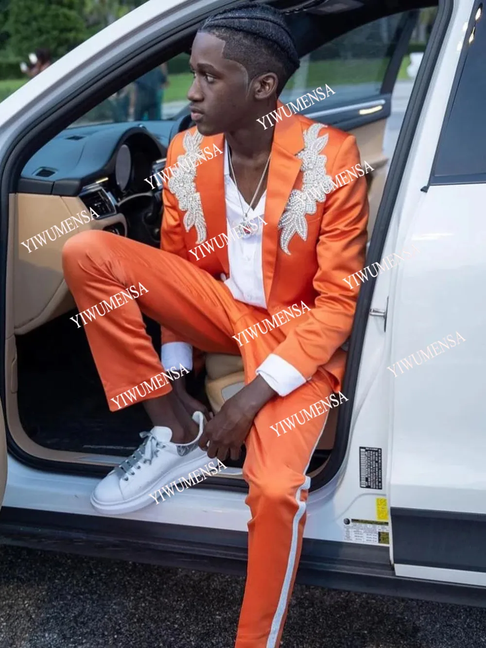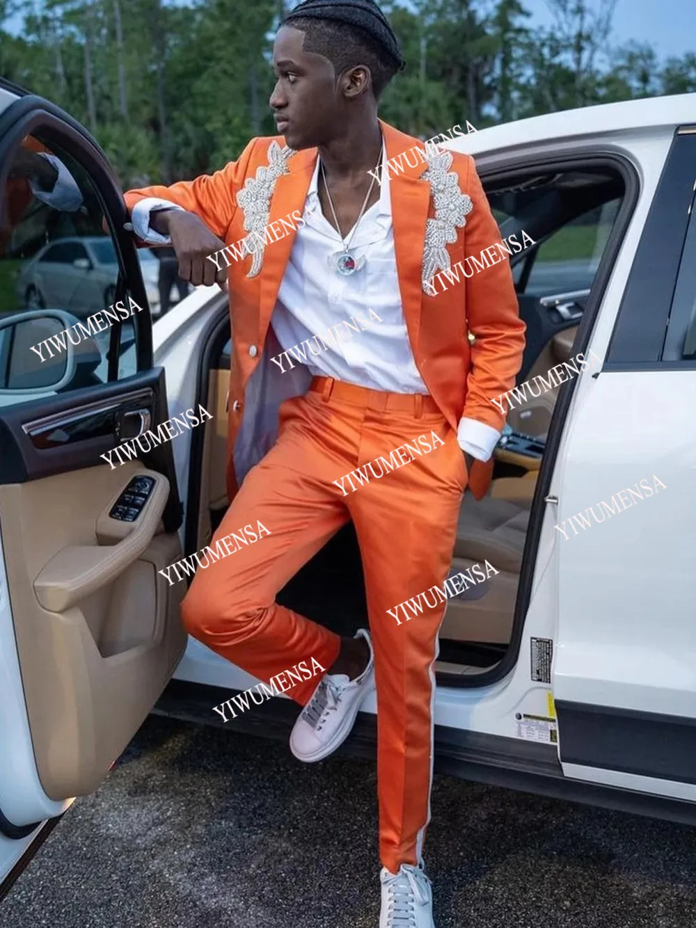 Оранжевые мужские костюмы для шафера, блестящие белые платья с аппликацией и жемчугом для выпускного вечера, пиджак с отложным воротником и брюки