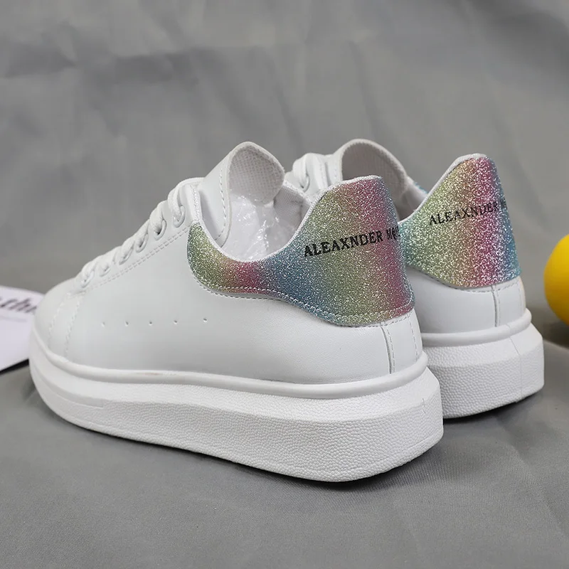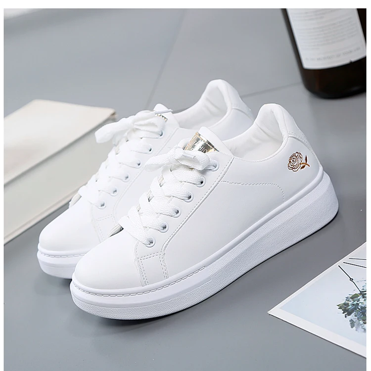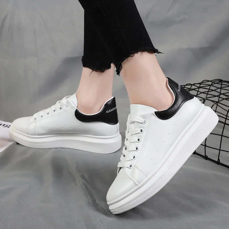 Кроссовки женские на шнуровке, кожаные, плоская подошва, повседневная обувь, ПУ, белые, весна-лето