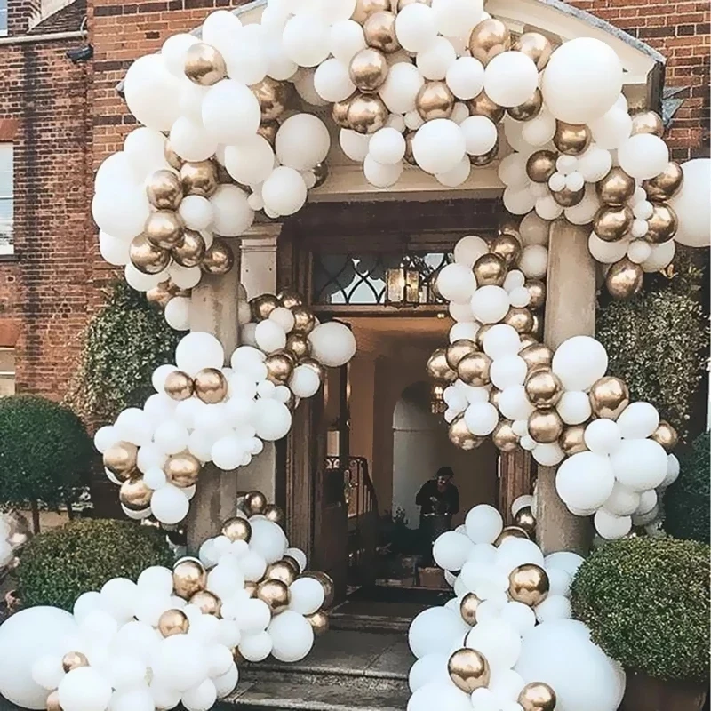 51018 дюймов классические Матовые Белые латексные воздушные шары, смешанные Хромированные Металлические золотые шары, украшения для дня рождения, новогодние и свадебные шары