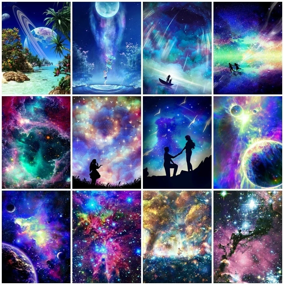 Квадратнаякруглая Алмазная 5D картина AZQSD сделай сам, для творчества, Космический пейзаж, алмазная вышивка, звездное небо, стразы, картины