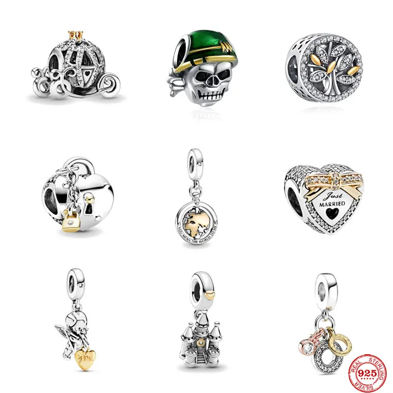 Браслет женский двухцветный из серебра 925 пробы с шармами Pandora