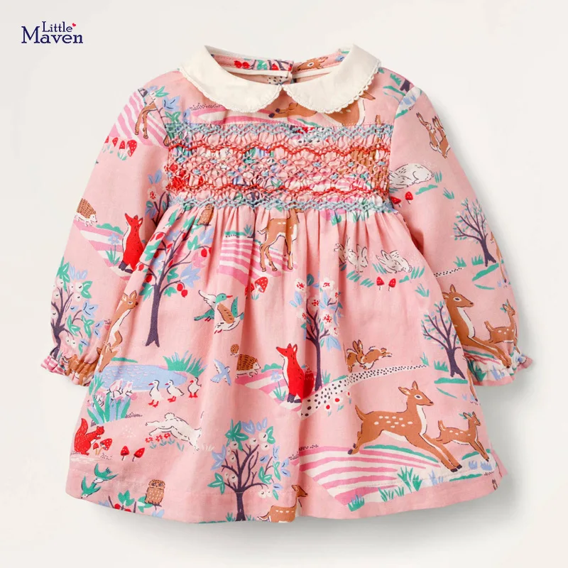 Детские платья Little maven 2021, летняя одежда для маленьких девочек, Брендовое платье, хлопковые платья для малышей с принтом животных и растений для детей