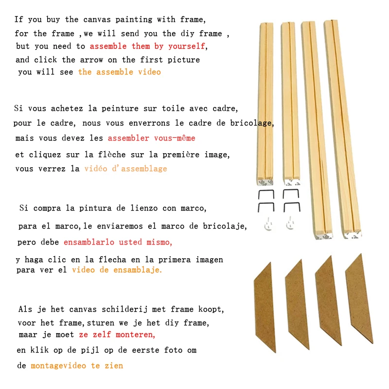 1. Если вы покупаете картину с рамкой «сделай сам», вам нужноПопробуйте самостоятельно,На первой основной картинке есть видео для сборки