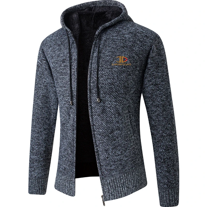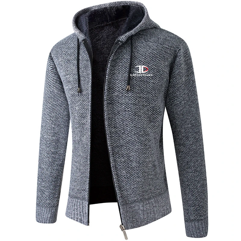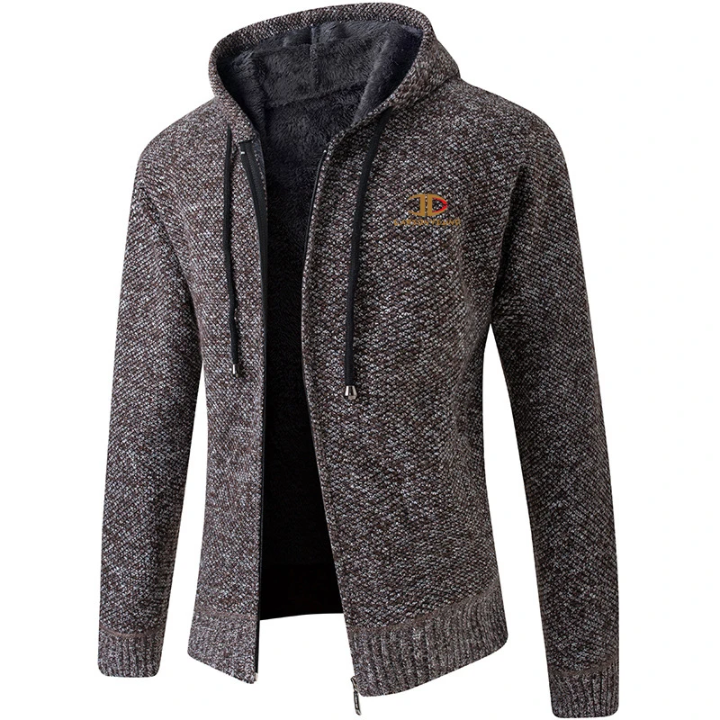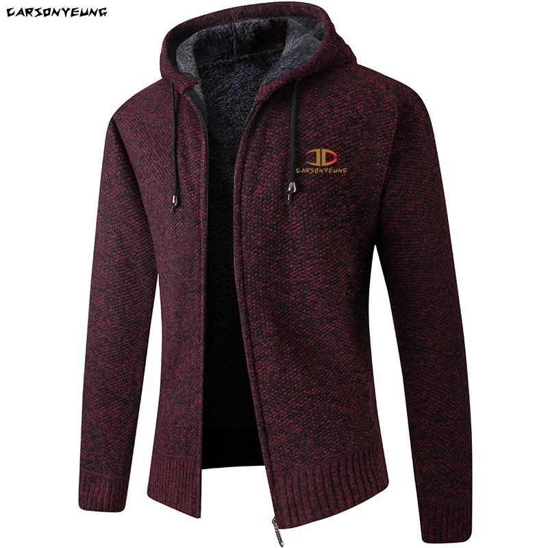Осенне-зимний мужской свитер, пальто, свитер из искусственной шерсти, куртки, мужское плотное вязаное пальто на молнии с капюшоном, трикотажная одежда с шерстяной подкладкой, кардиган