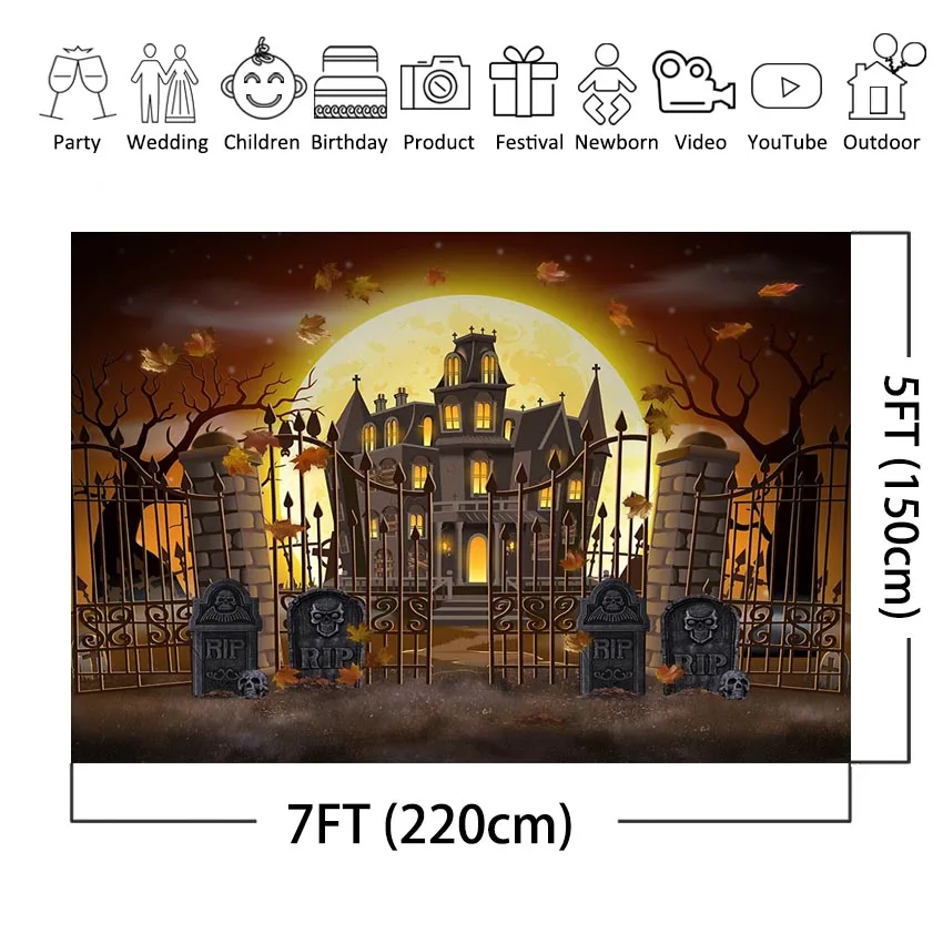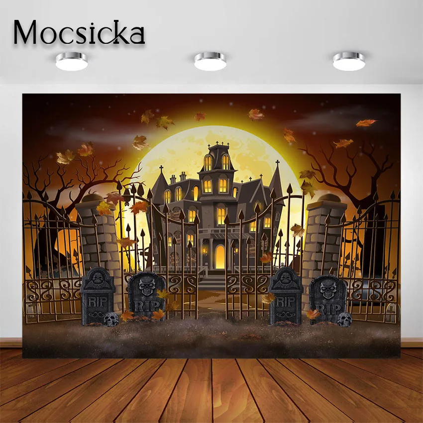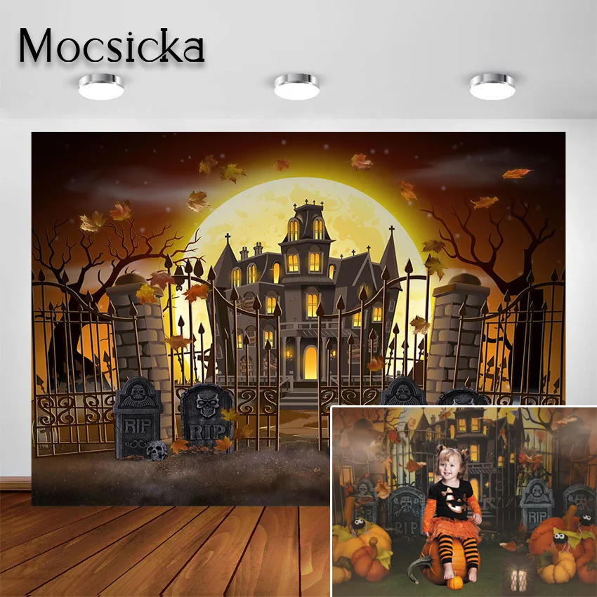 Mocsicka фон для фотографий Хэллоуин полная луна страшный замок кладбище Хэллоуин ребенок дети портрет фото фон
